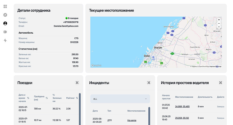 Получайте уведомления при превышении скорости или резких манёврах — помогайте водителям избежать жалоб заранее.